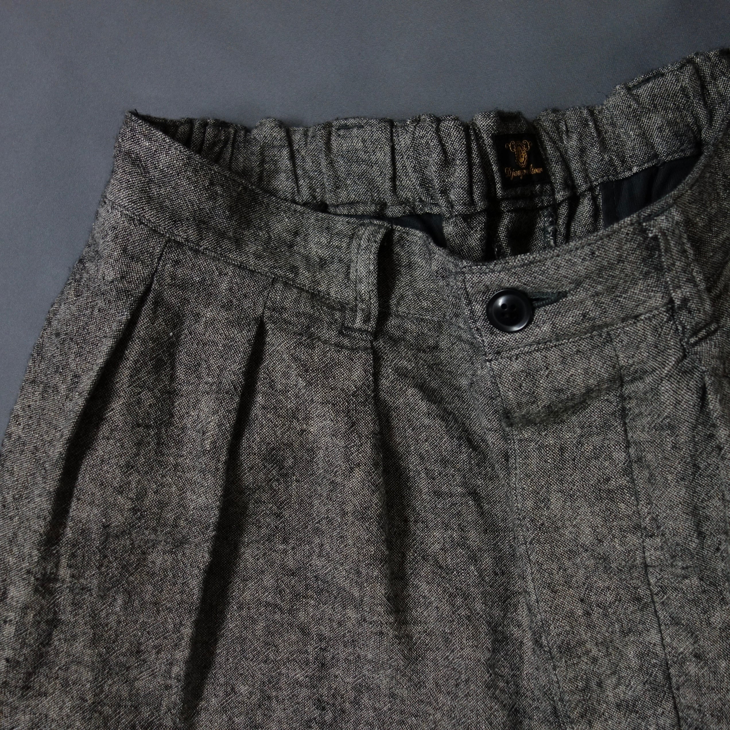 に刺激を受けたスリーインタックのワイドな裾上げ不要のパンツです。
