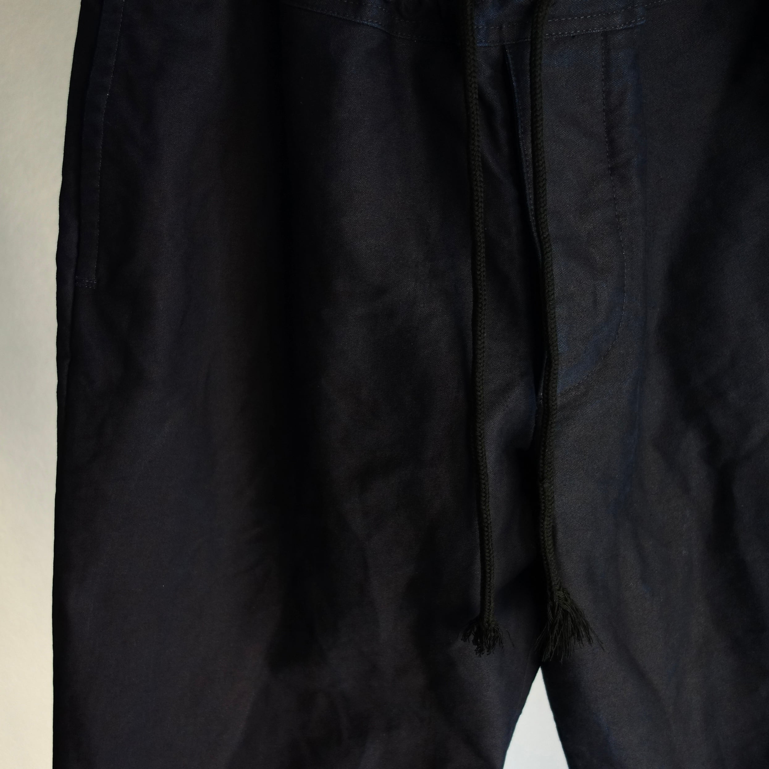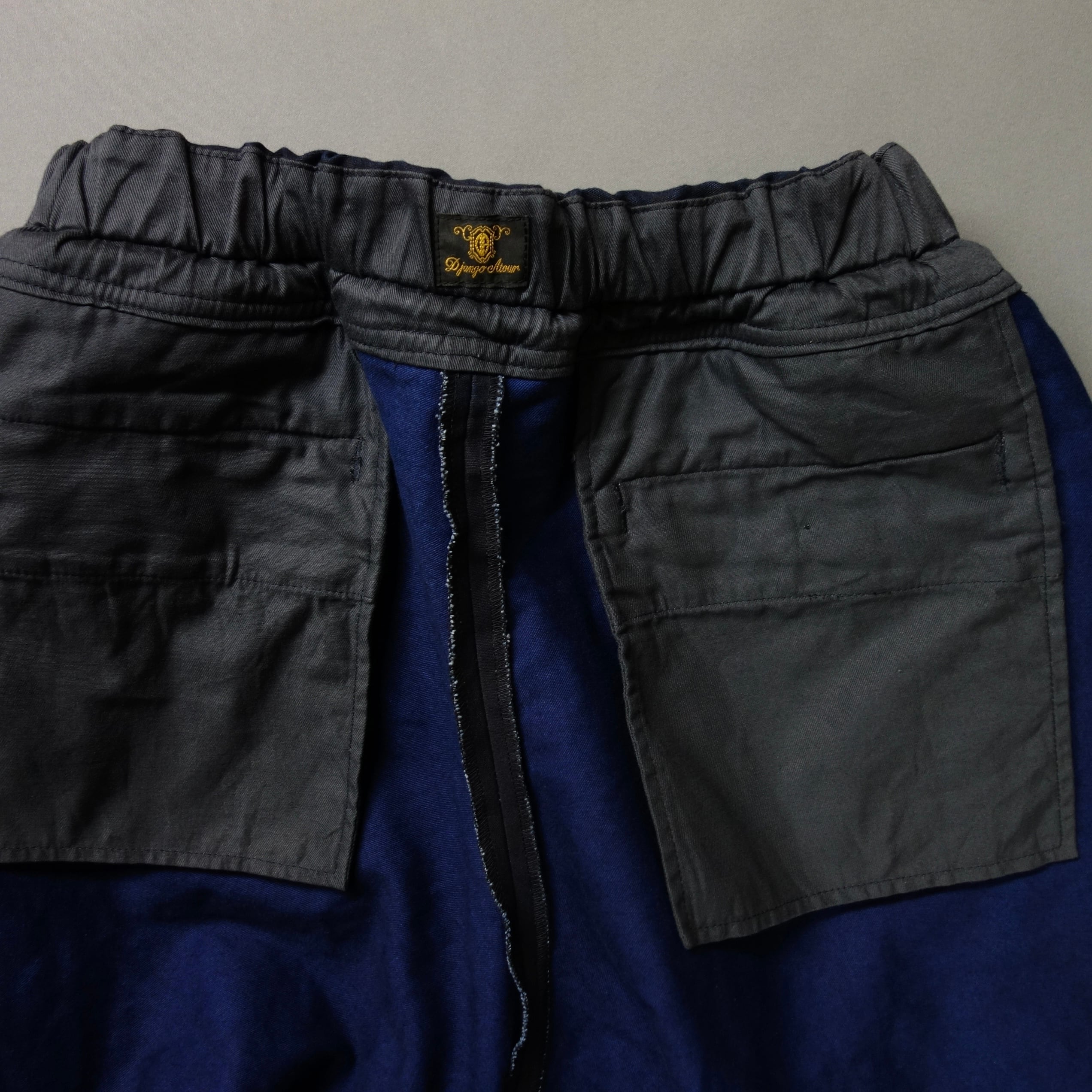 インディゴ染めの後に表面のみ墨汁インク染め加工しています