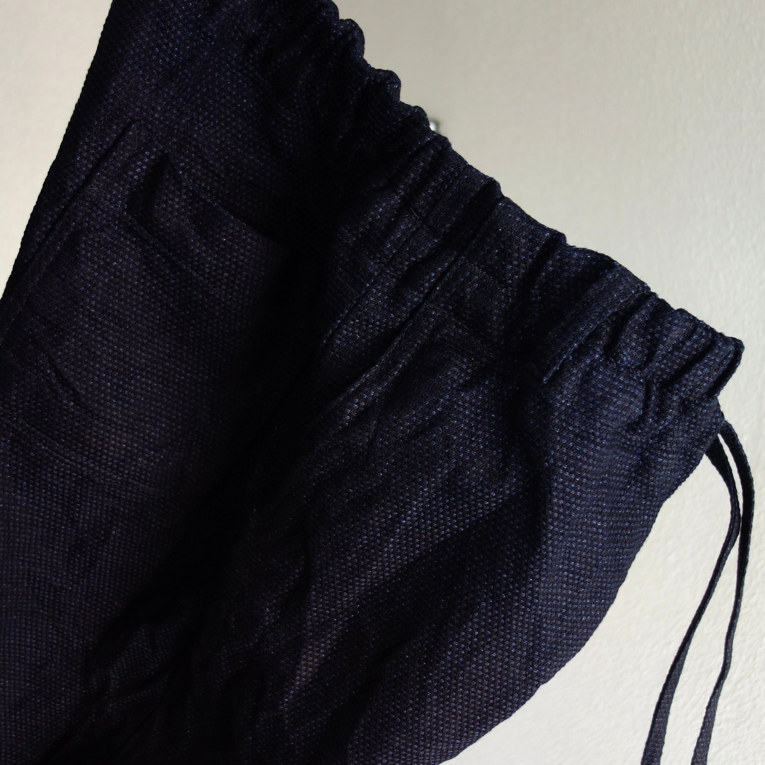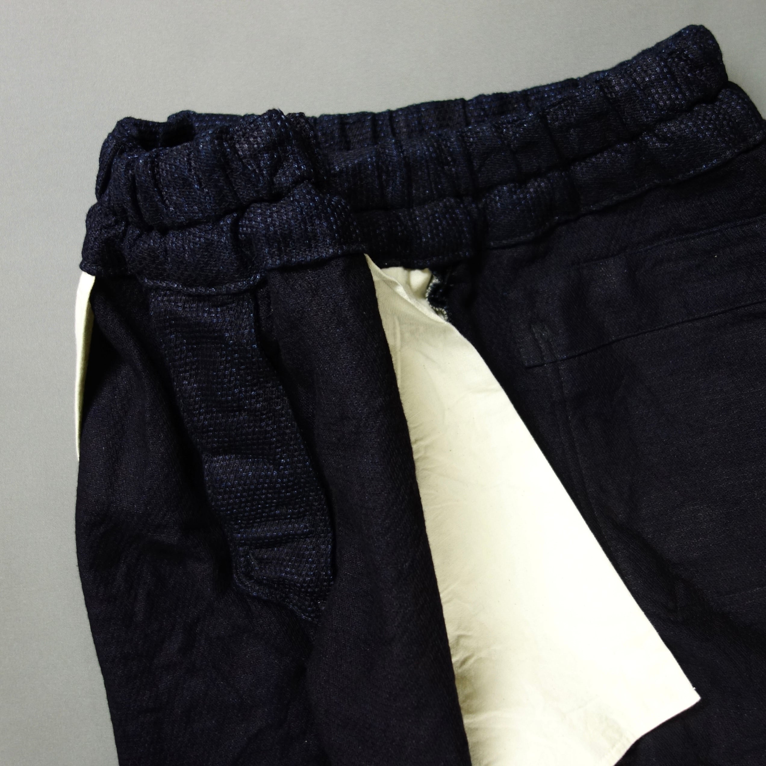 ウエストは共生地のロープとゴム仕様となっておりますのでストレスフリー。