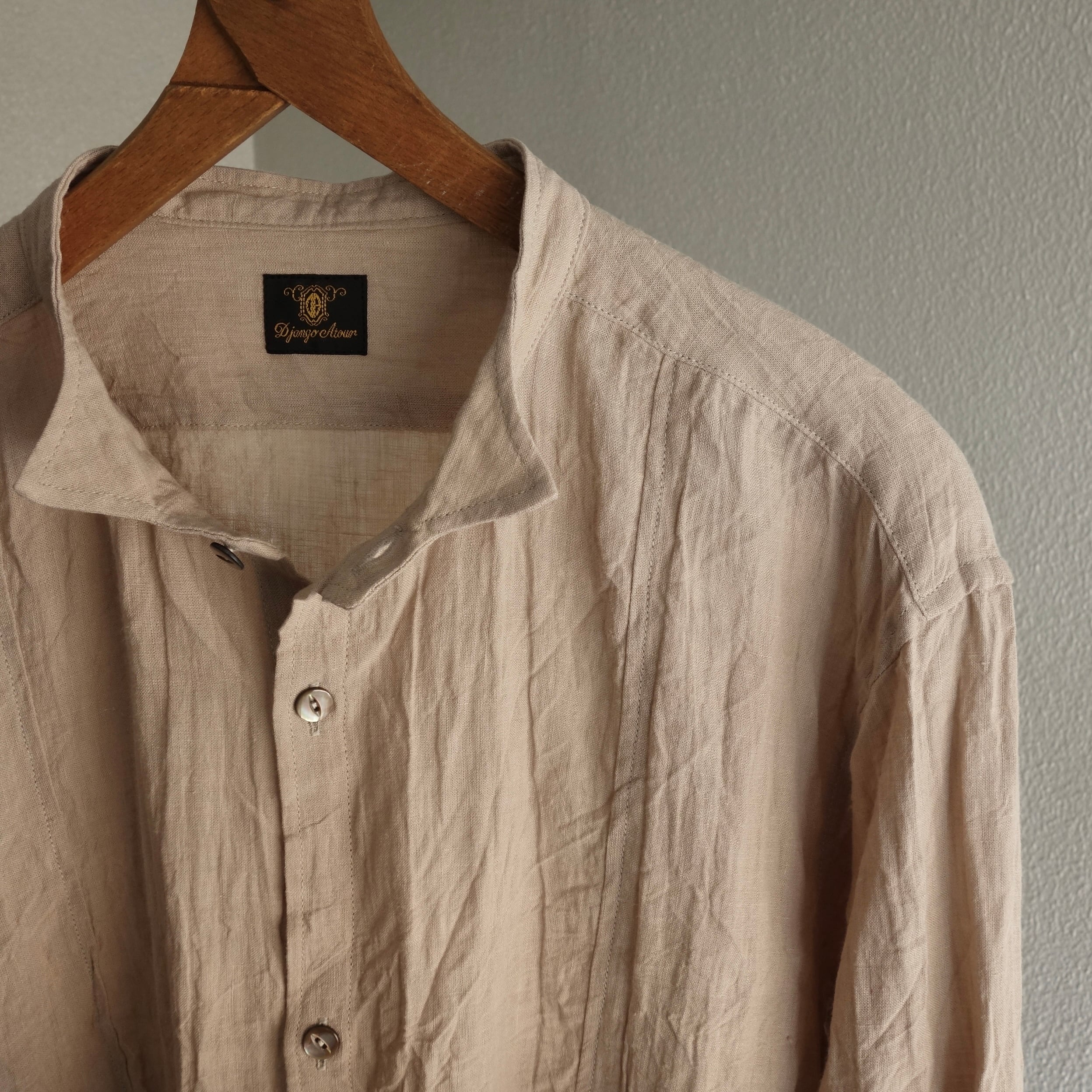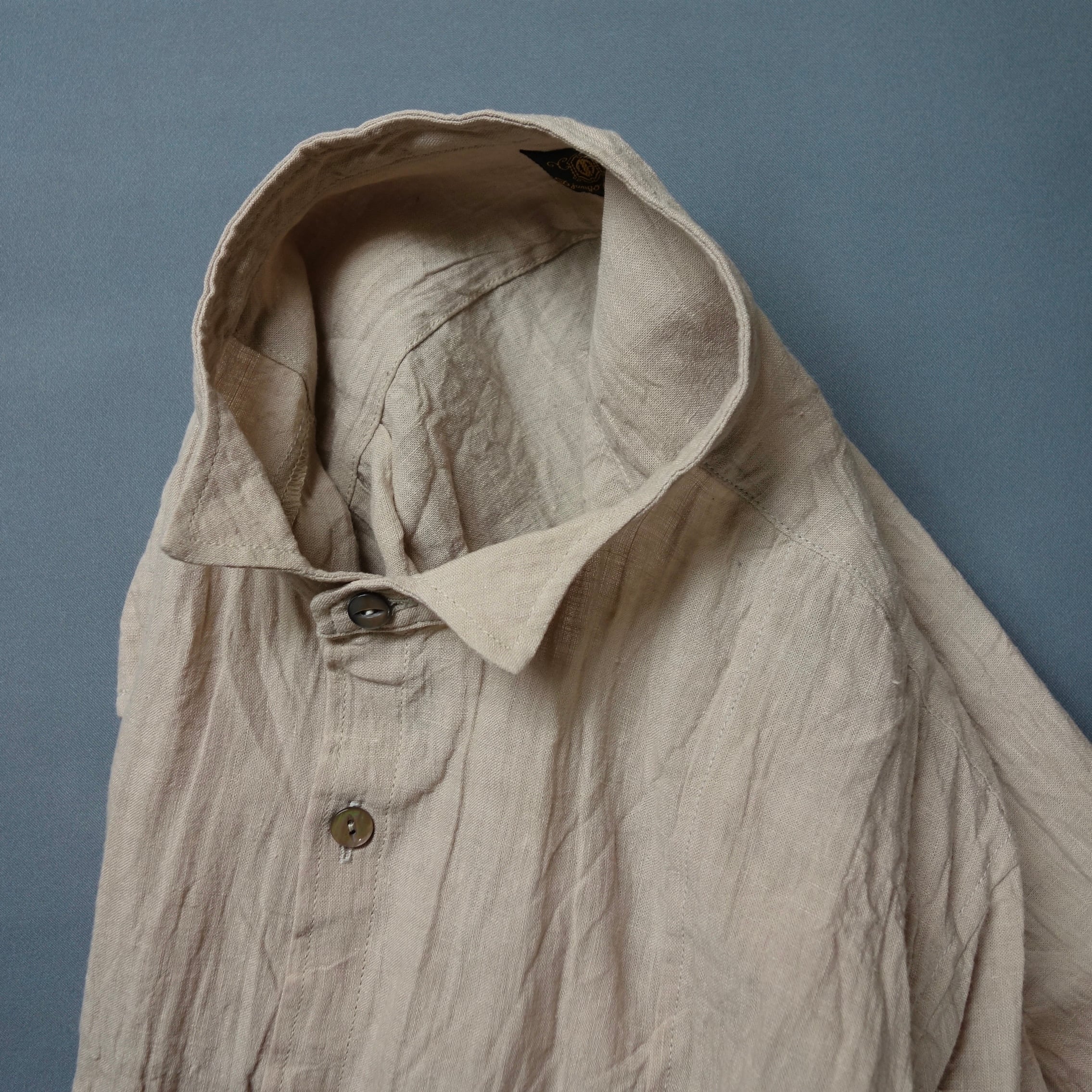 classic petit-wingcollar linen shirt / powderbeige