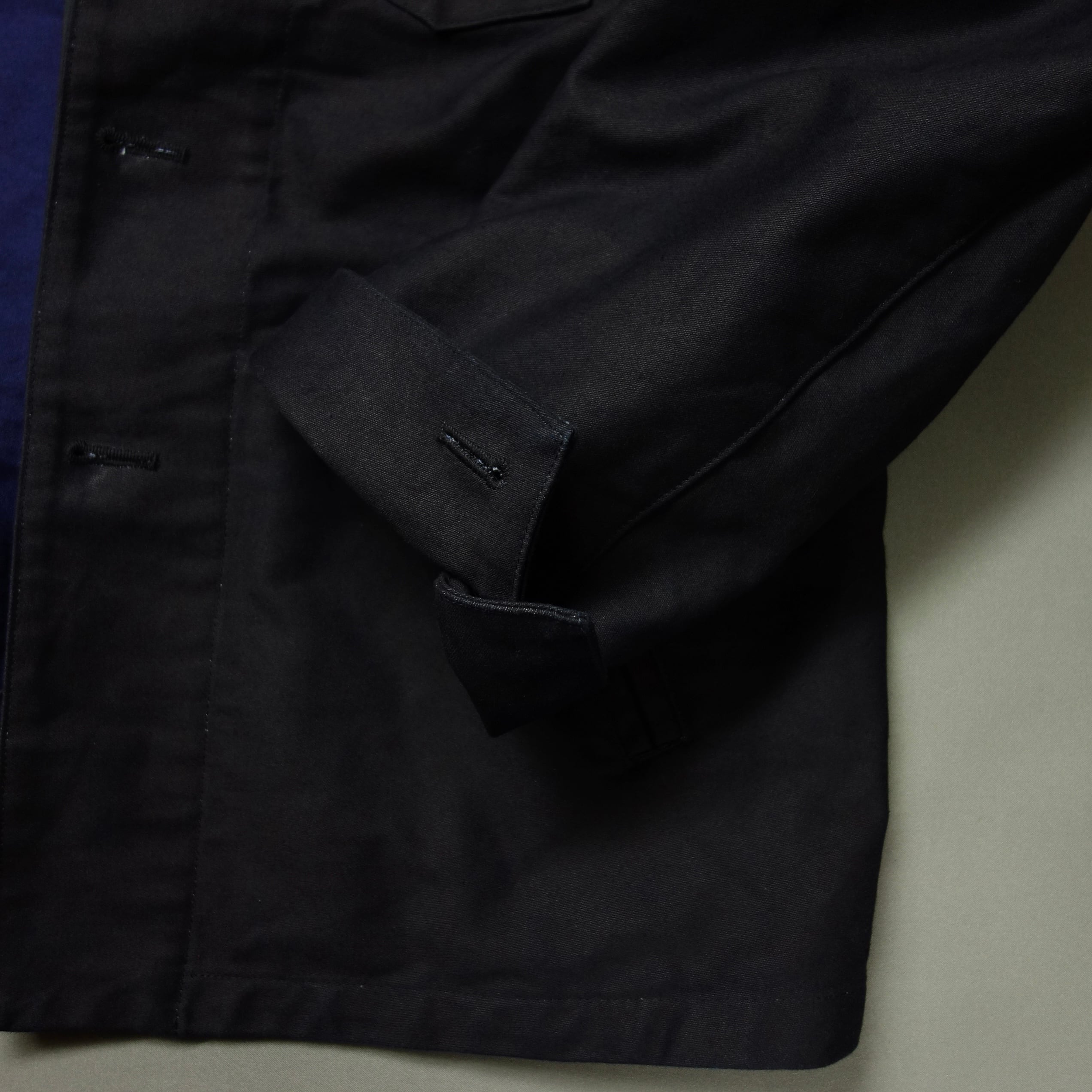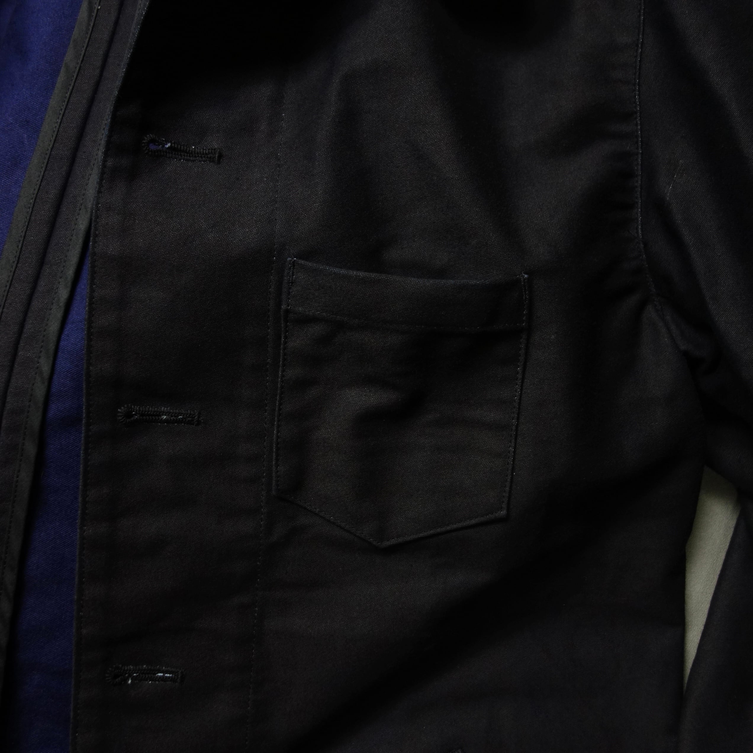 インディゴ染めの後に表面のみ墨汁インク染め加工しています