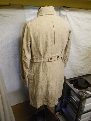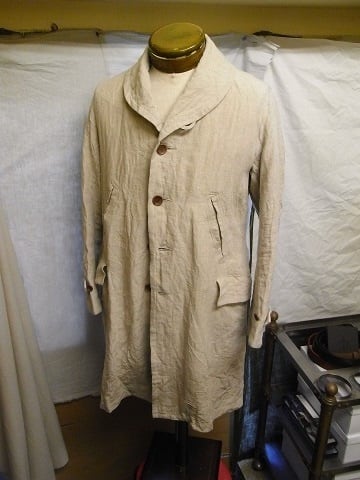 へヴィリネンを使ったヴィクトリアンカラーのロングコートです。