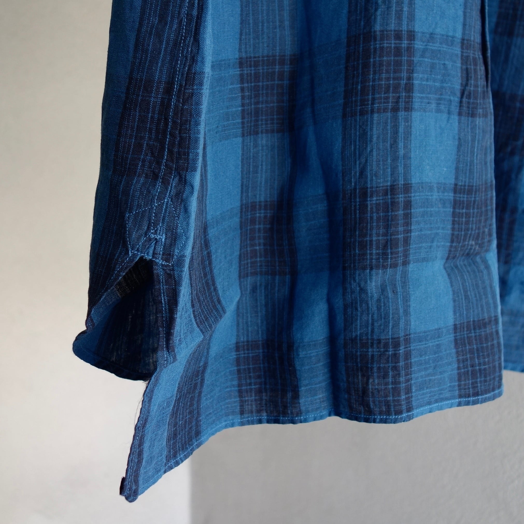 清涼感のあるチェック織りのショールカラーです。