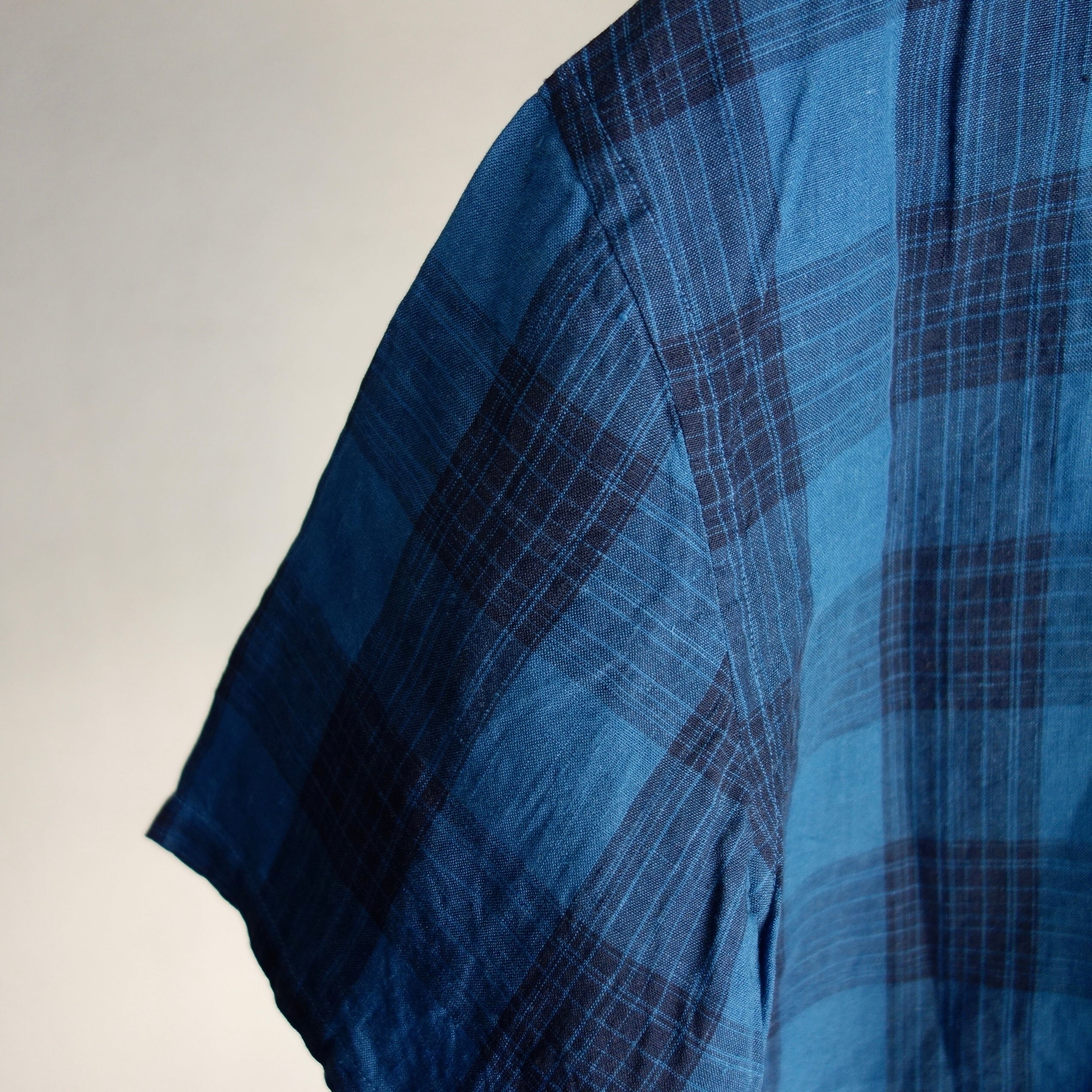 linen shawlcollar halfsleeve shirt / navy x blue